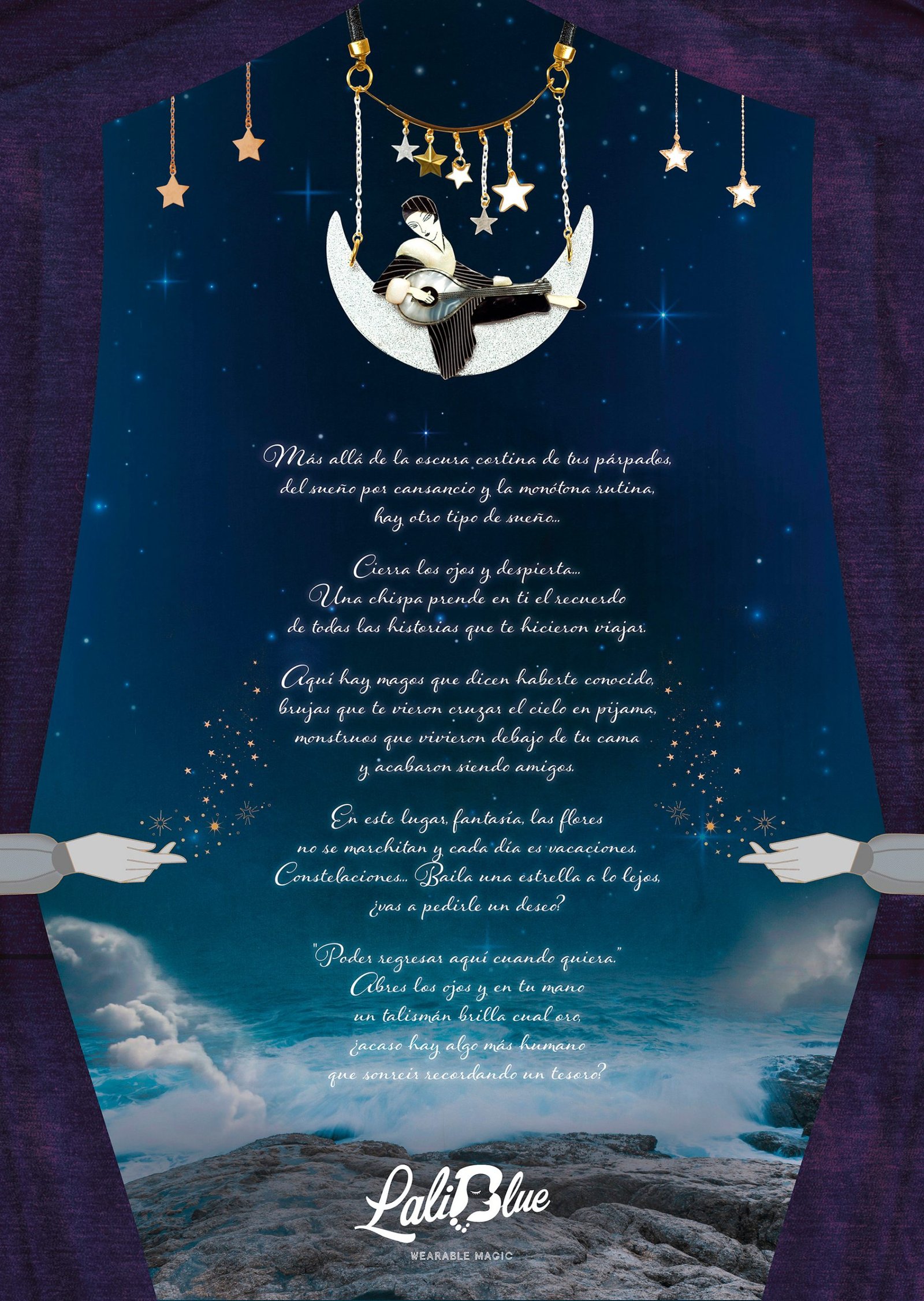 LaliBlue es una marca valenciana que dise帽a y confecciona joyas inspiradas en cuentos, pel铆culas, artes y tradiciones populares. Para ella elabor茅 este dossier de marca, fruto del an谩lisis que me permiti贸 redactar e ilustrar un manifiesto coherente con su concepto creativo y pilares esenciales.