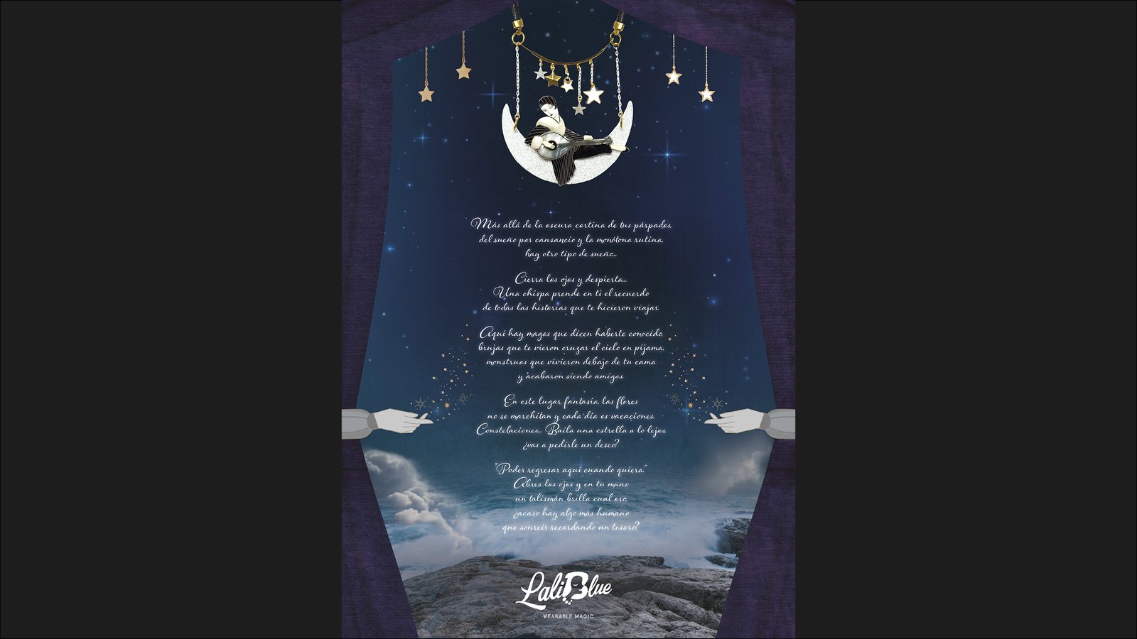 LaliBlue es una marca valenciana que dise帽a y confecciona joyas inspiradas en cuentos, pel铆culas, artes y tradiciones populares. Para ella elabor茅 este dossier de marca, fruto del an谩lisis que me permiti贸 redactar e ilustrar un manifiesto coherente con su concepto creativo y pilares esenciales.